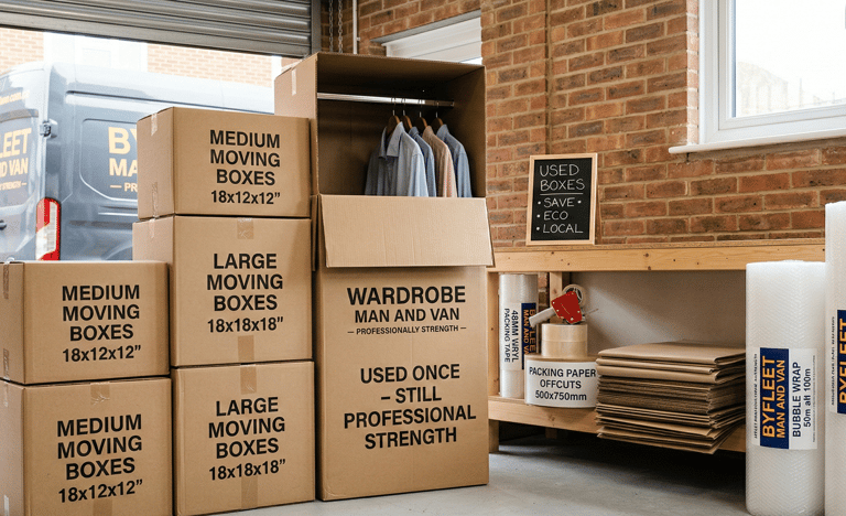 Moving home doesn’t have to cost the earth—literally or figuratively. At Byfleet Man and Van, we stock high-quality, professional double-walled moving boxes. These are not your flimsy supermarket boxes; they are trade-strength containers that have been used once for a house move and are ready for another.
